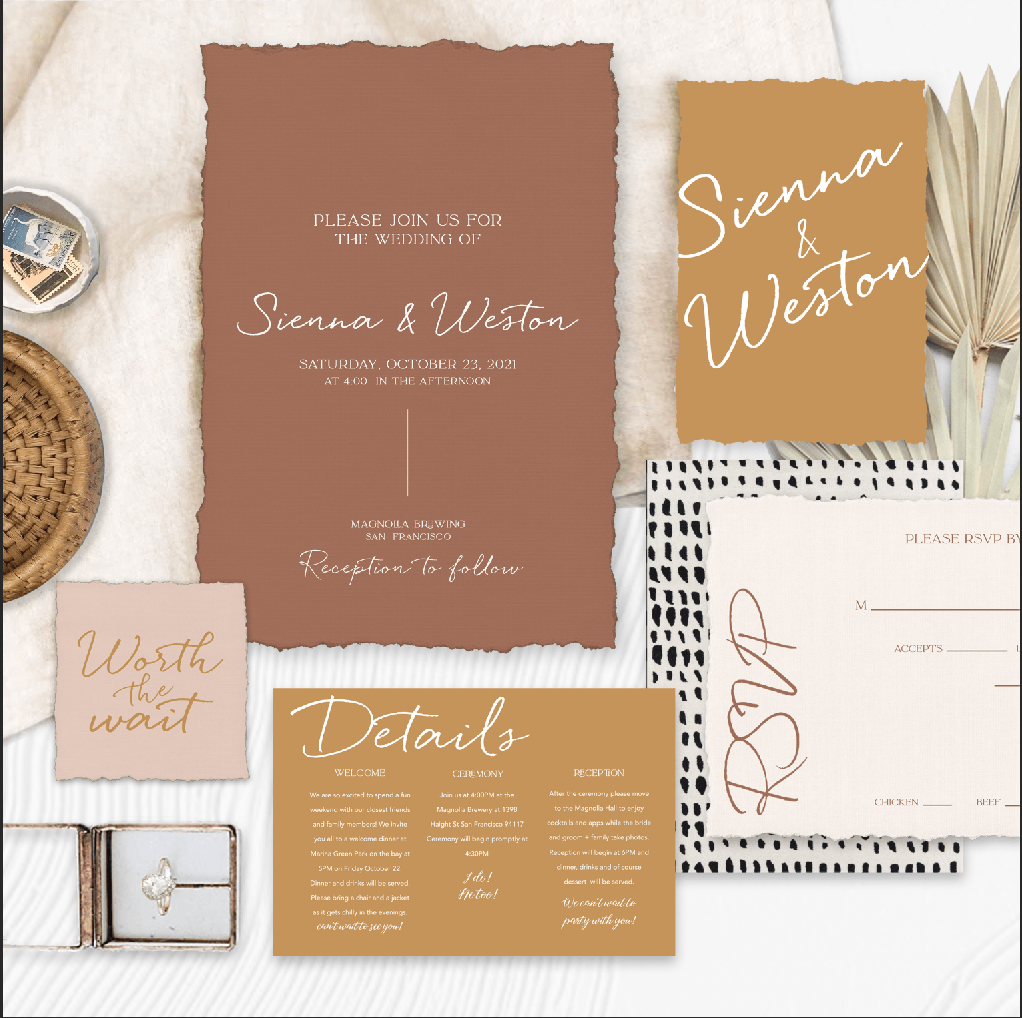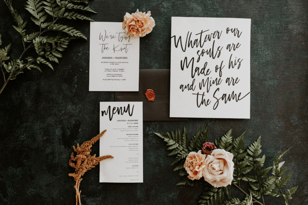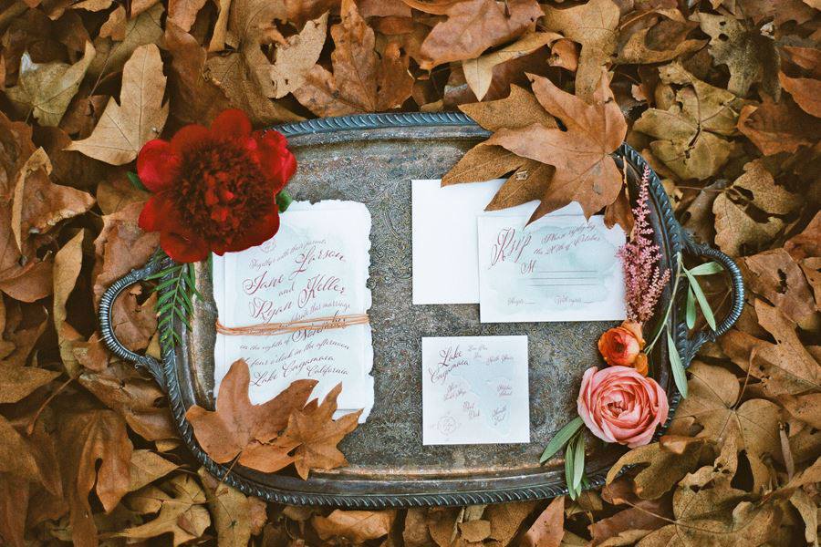 Custom invitations suites - painted jackets and shoes - day of stationery including signs, seating charts, table numbers, menus and more.